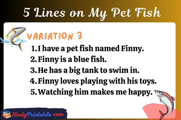 Having a pet fish can be a delightful experience for kids. Pet fish come in various types and colors, and they require special care to thrive. This topic will help children learn about the joys and responsibilities of owning a pet fish. They’ll discover how to feed, clean, and create a comfortable habitat for their finned friends. Let’s explore what it takes to be a great pet fish owner! Here are different 5-line descriptions about my pet fish.