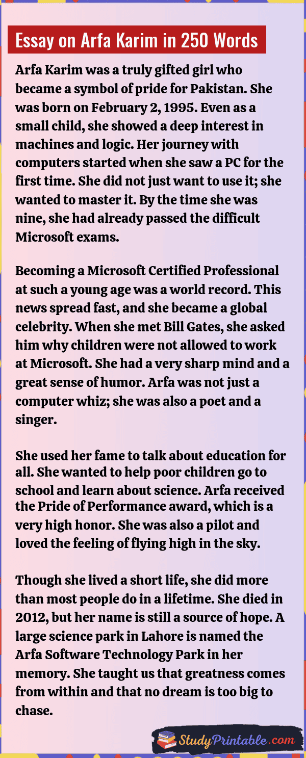 Essay on Arfa Karim in 250 Words