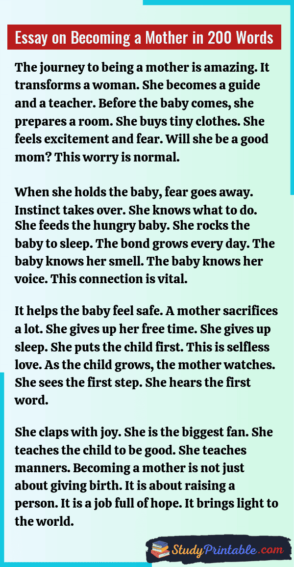 Essay on Becoming a Mother in 200 Words