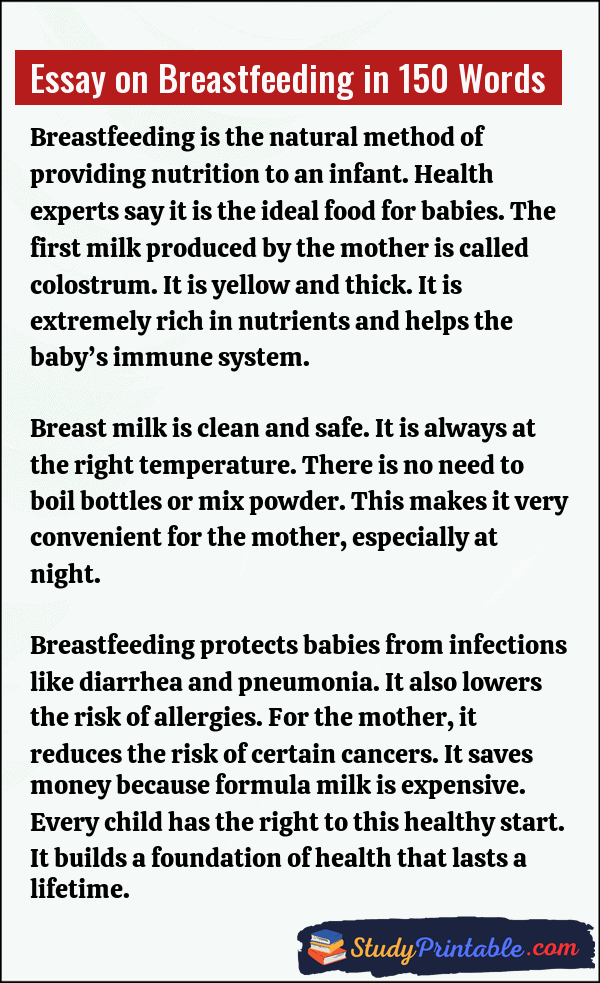 Essay on Breastfeeding in 150 Words