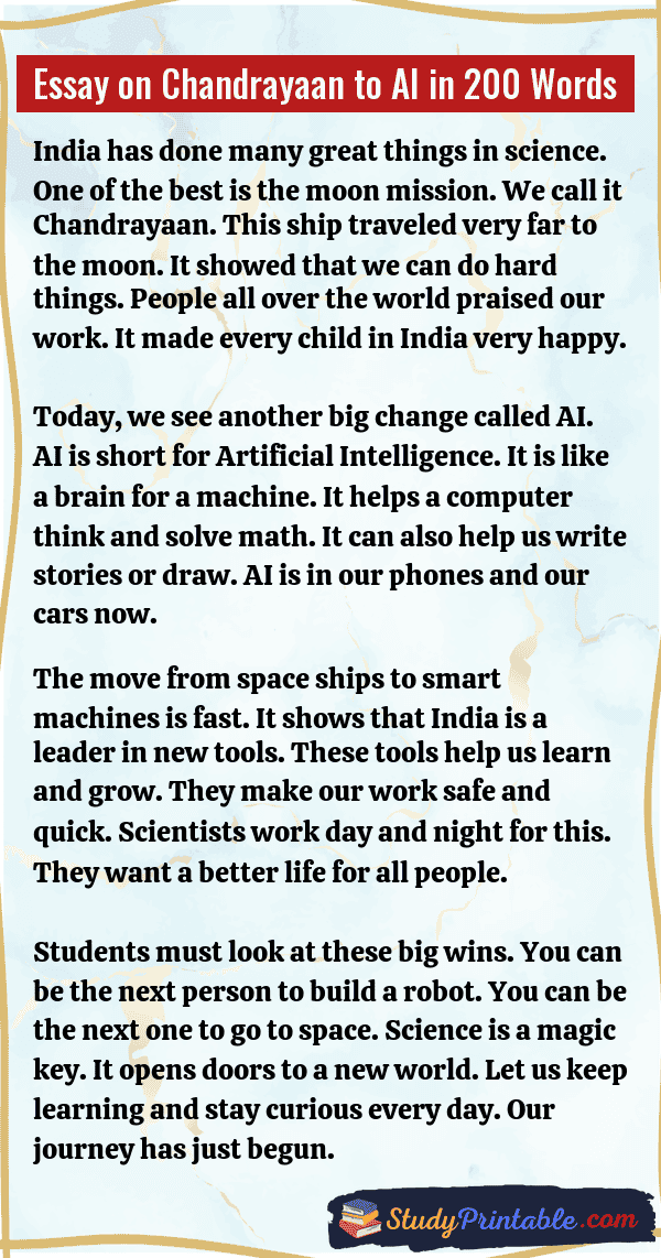 Essay on Chandrayaan to AI in 200 Words