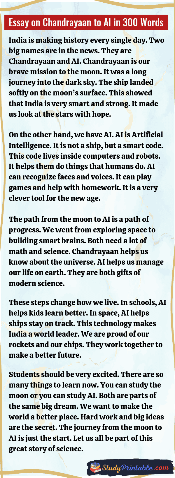 Essay on Chandrayaan to AI in 300 Words