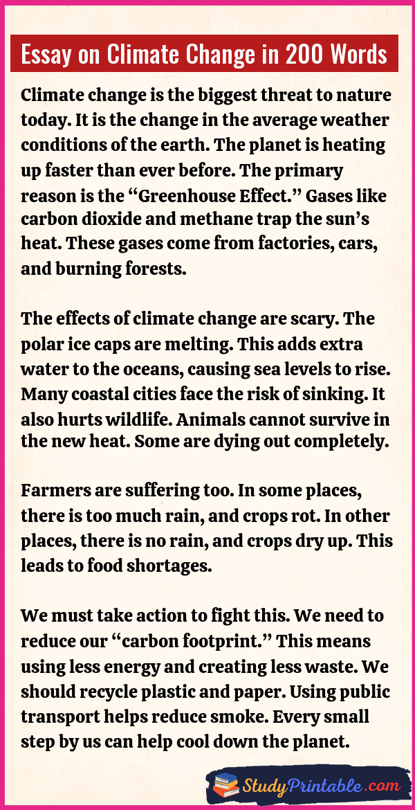Essay on Climate Change in 200 Words