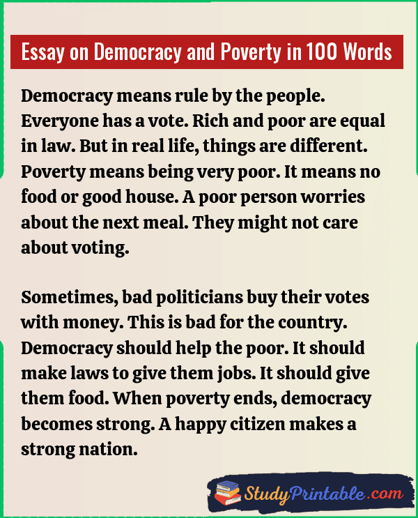 Essay on Democracy and Poverty in 100 Words