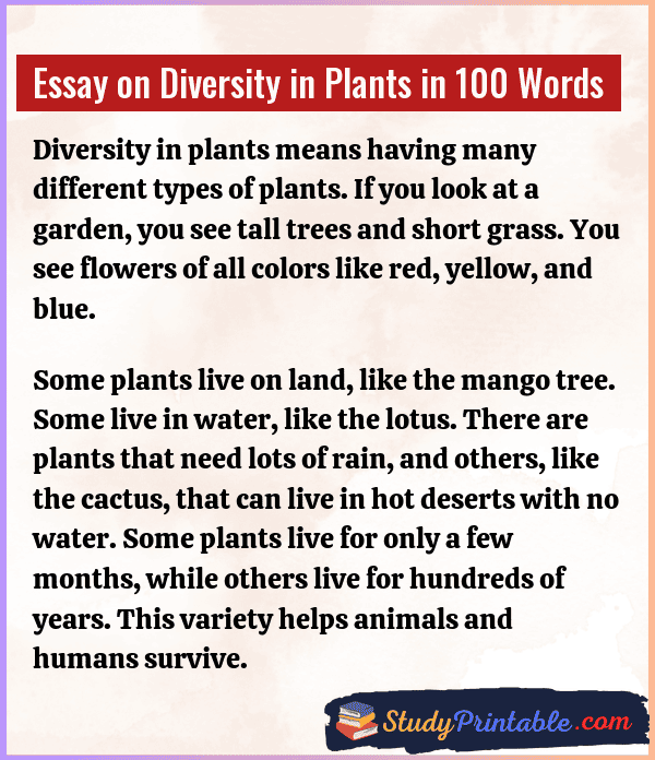 Essay on Diversity in Plants in 100 Words