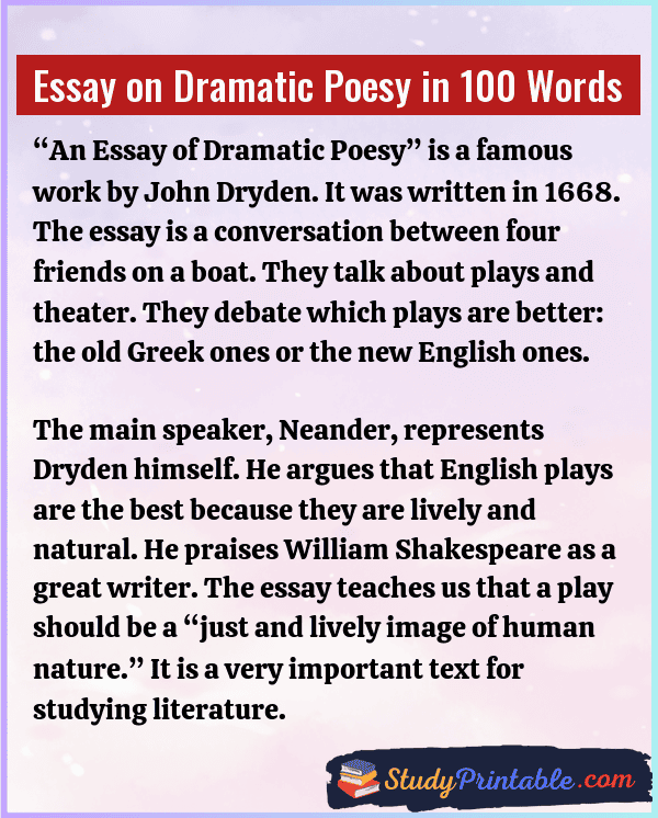Essay on Dramatic Poesy in 100 Words