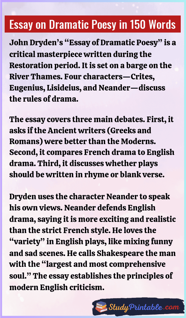 Essay on Dramatic Poesy in 150 Words
