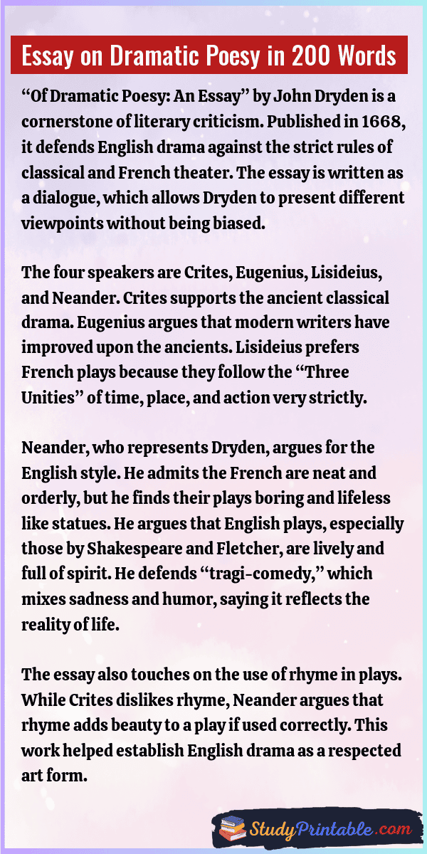 Essay on Dramatic Poesy in 200 Words