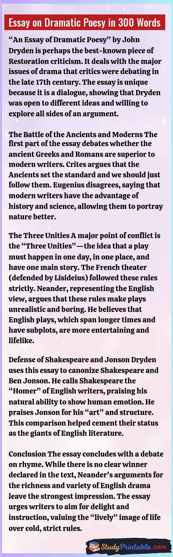 Essay on Dramatic Poesy in 500 Words