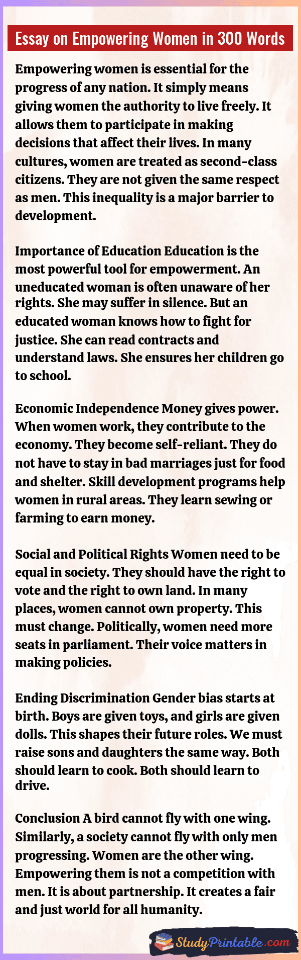 Essay on Empowering Women in 300 Words