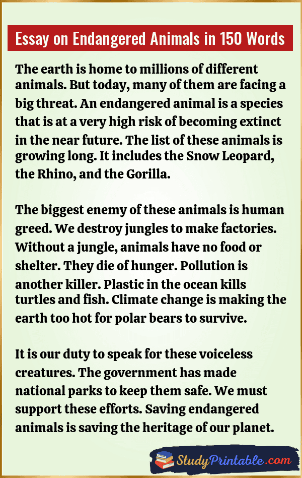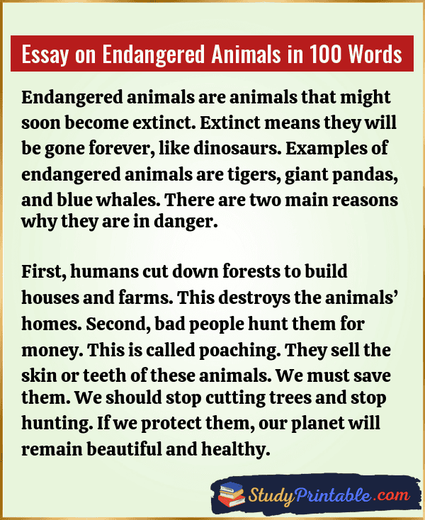 Essay on Endangered Animals in 100 Words