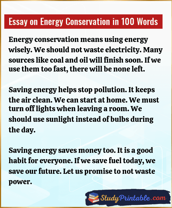 Essay on Energy Conservation in 100 Words