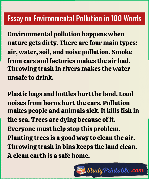 Essay on Environmental Pollution in 100 Words
