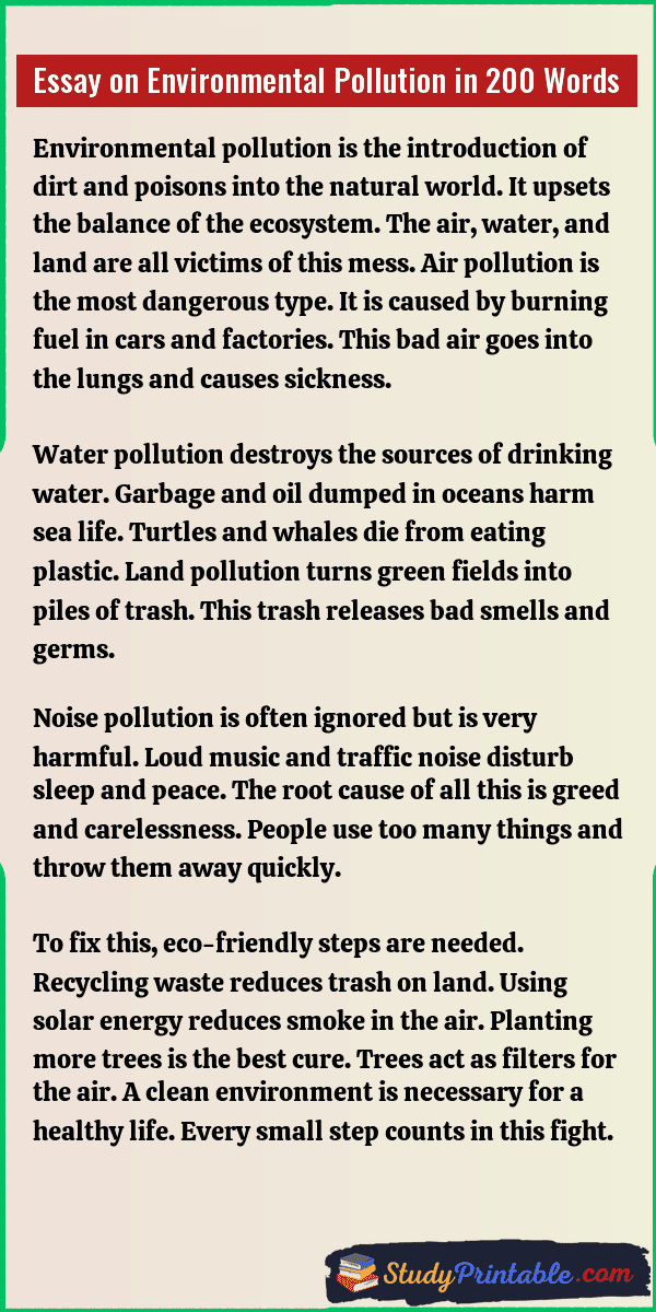 Essay on Environmental Pollution in 200 Words