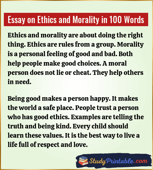Essay on Ethics and Morality in 100 Words