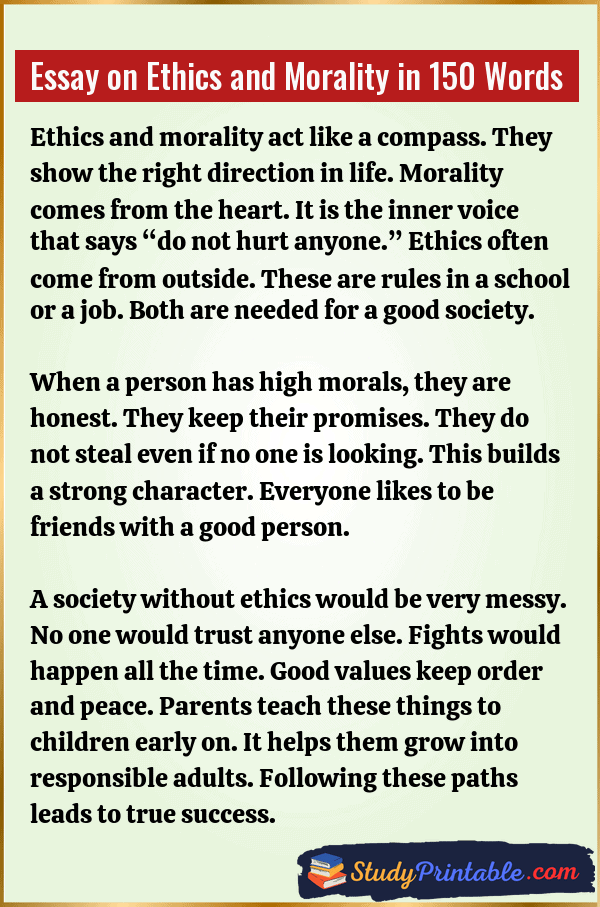 Essay on Ethics and Morality in 150 Words