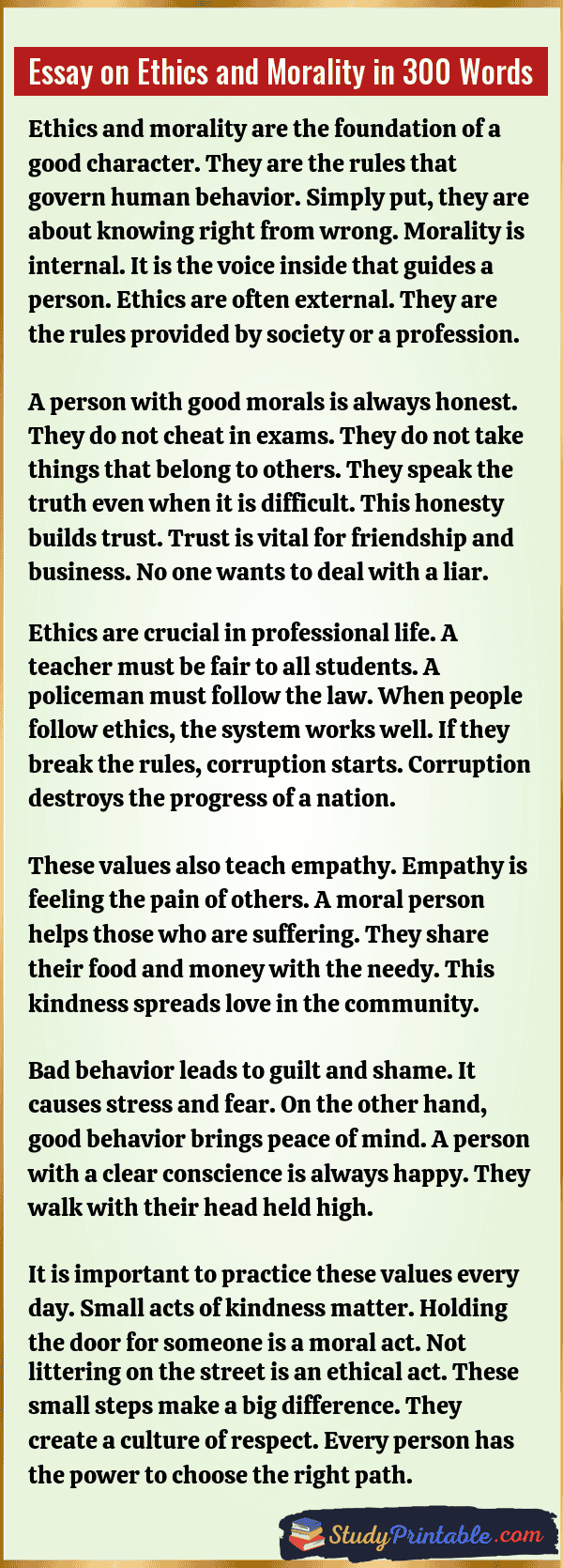 Essay on Ethics and Morality in 300 Words