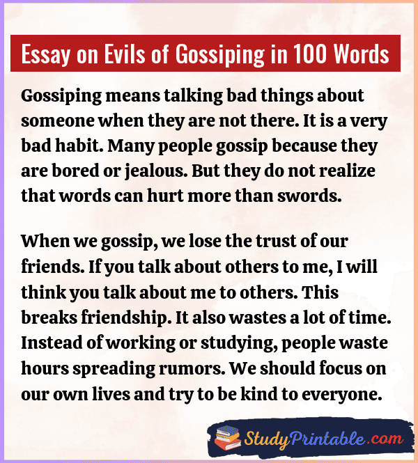 Essay on Evils of Gossiping in 100 Words