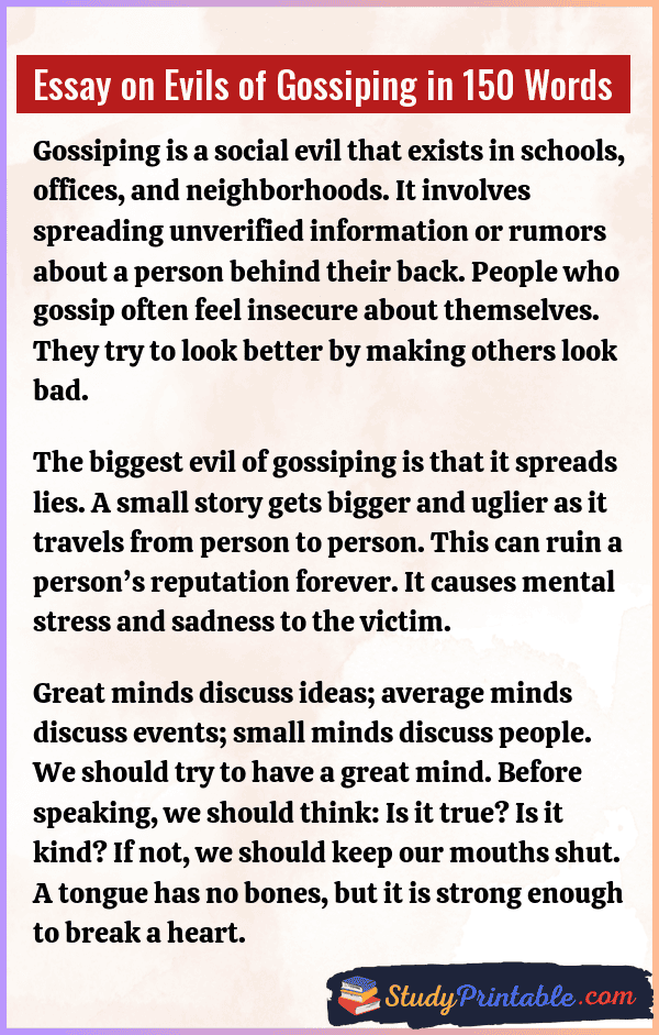 Essay on Evils of Gossiping in 150 Words
