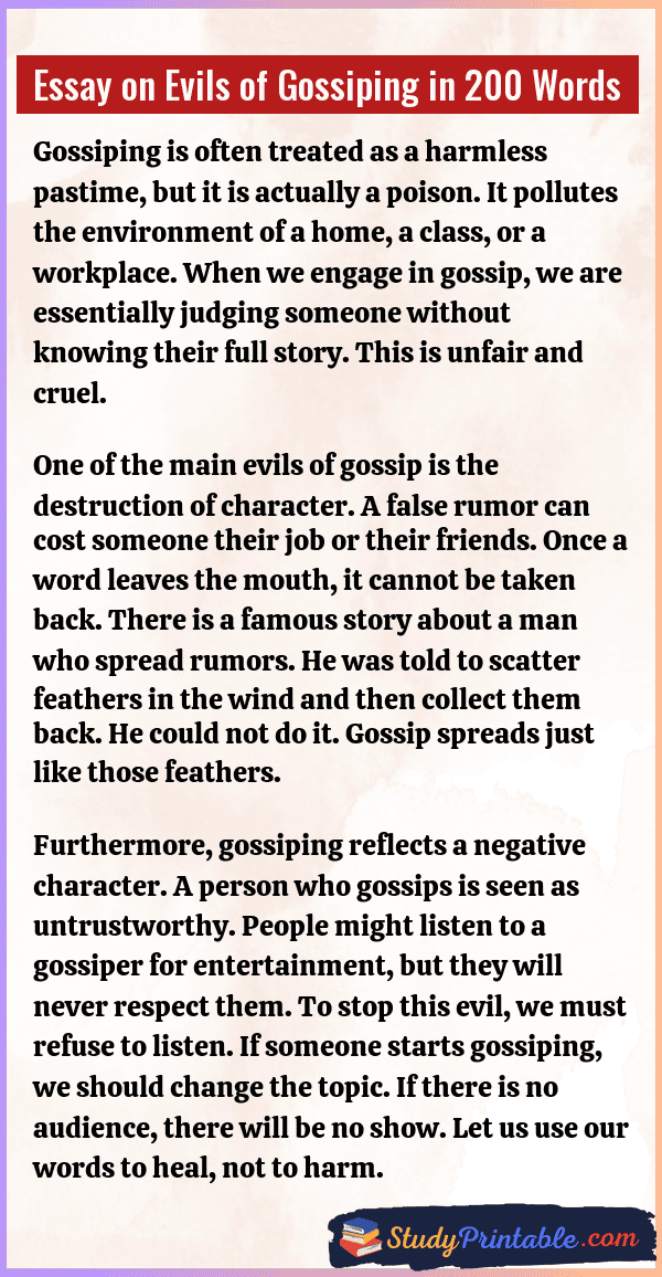 Essay on Evils of Gossiping in 200 Words