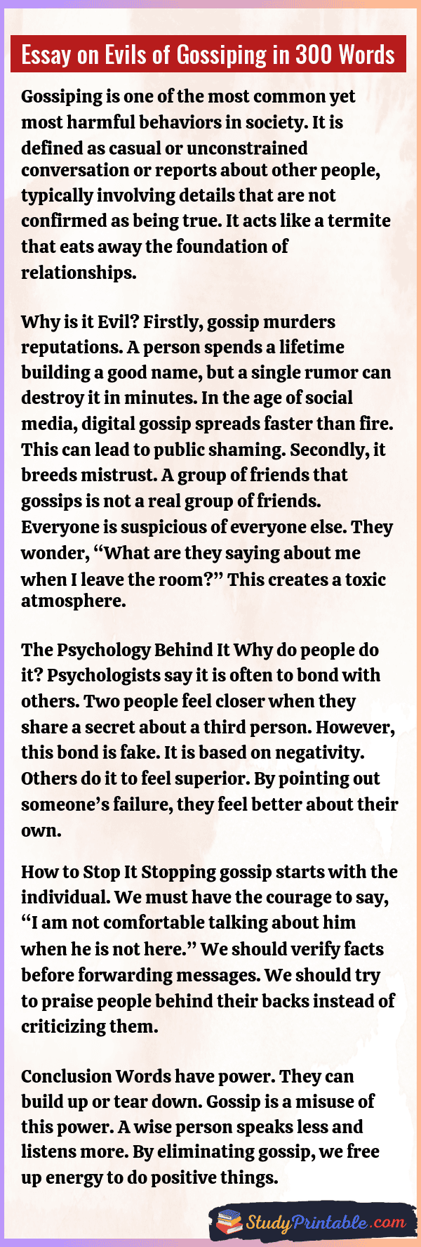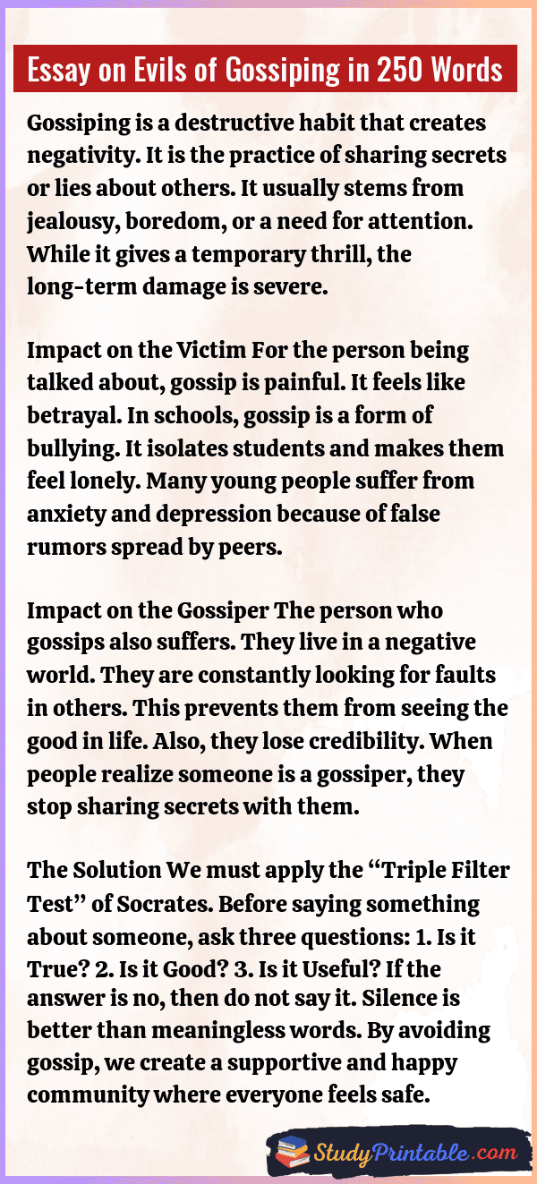 Essay on Evils of Gossiping in 300 Words