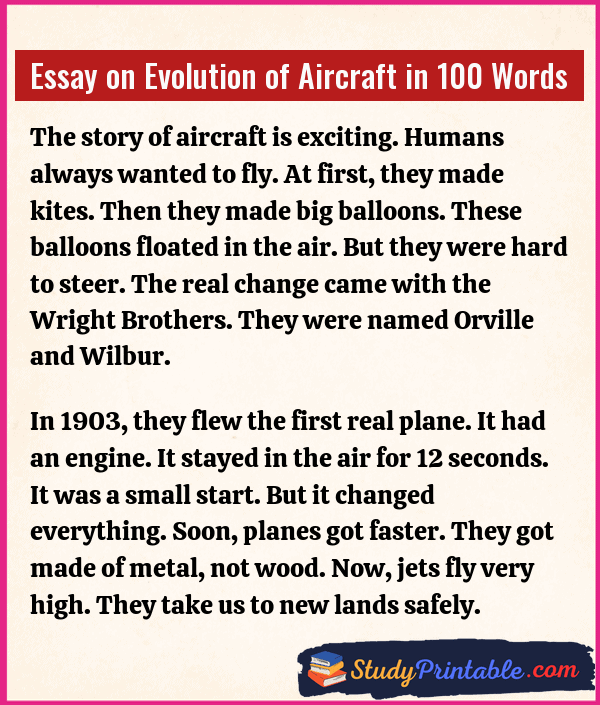 Essay on Evolution of Aircraft in 100 Words