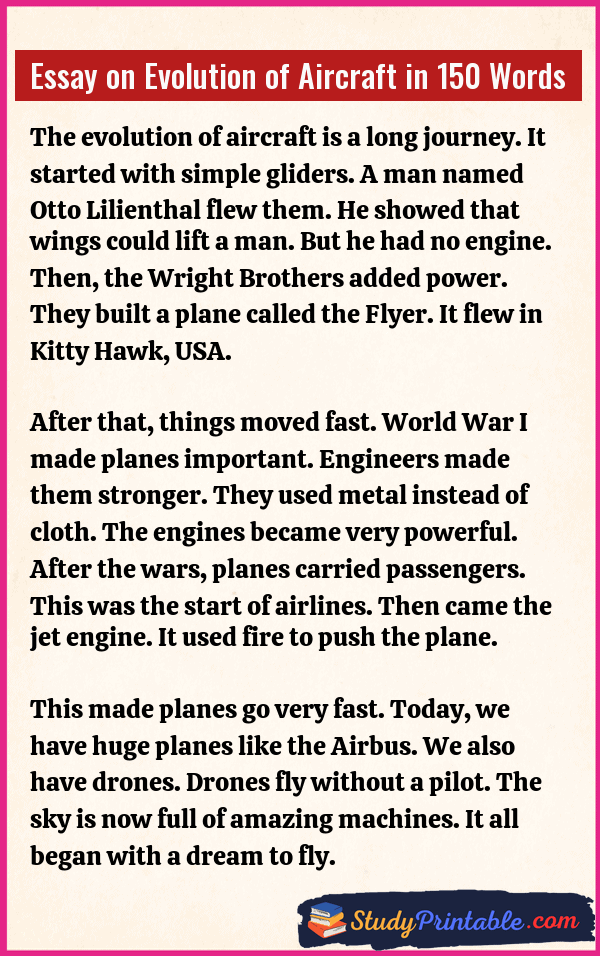 Essay on Evolution of Aircraft in 150 Words