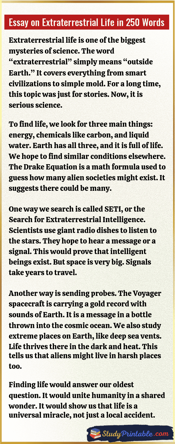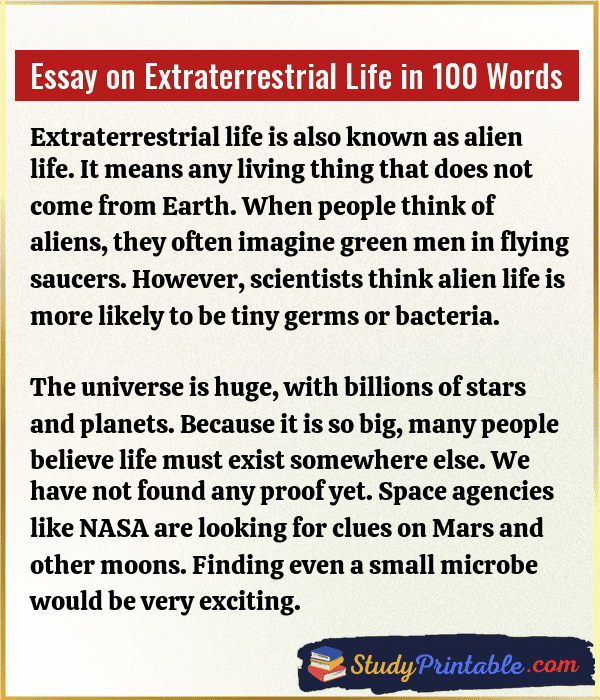 Essay on Extraterrestrial Life in 100 Words