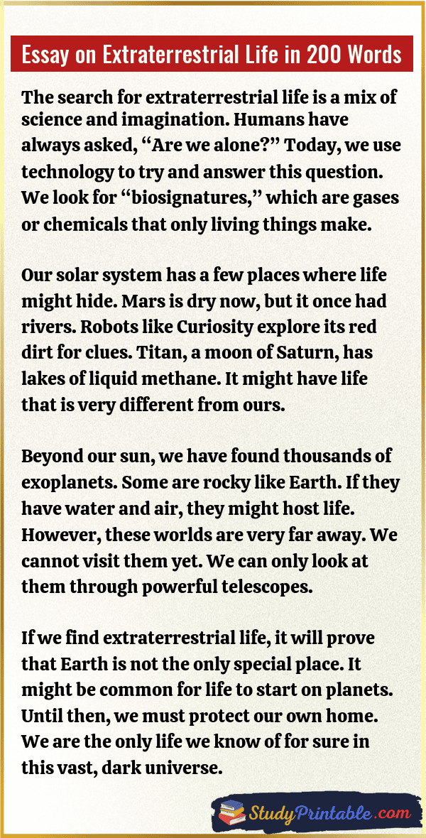 Essay on Extraterrestrial Life in 200 Words