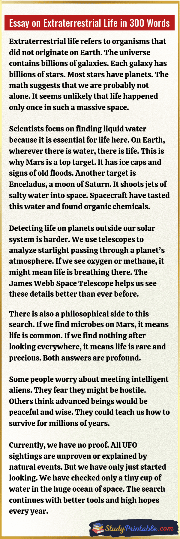 Essay on Extraterrestrial Life in 300 Words