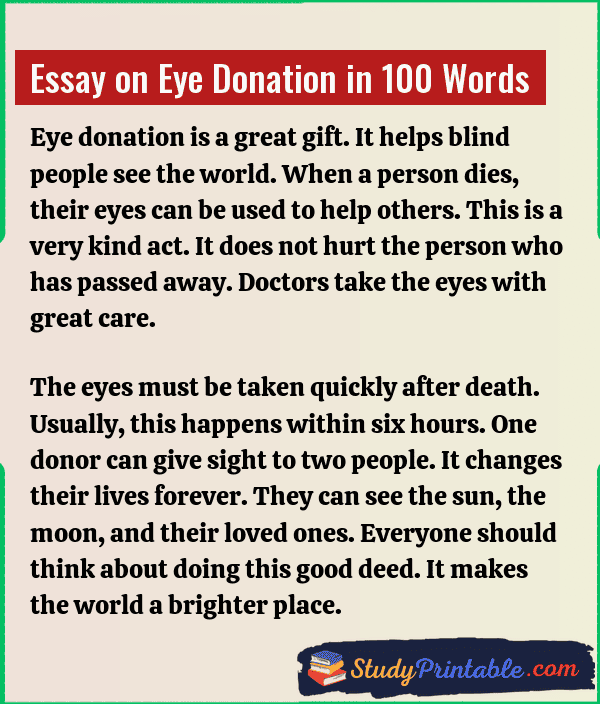 Essay on Eye Donation in 100 Words