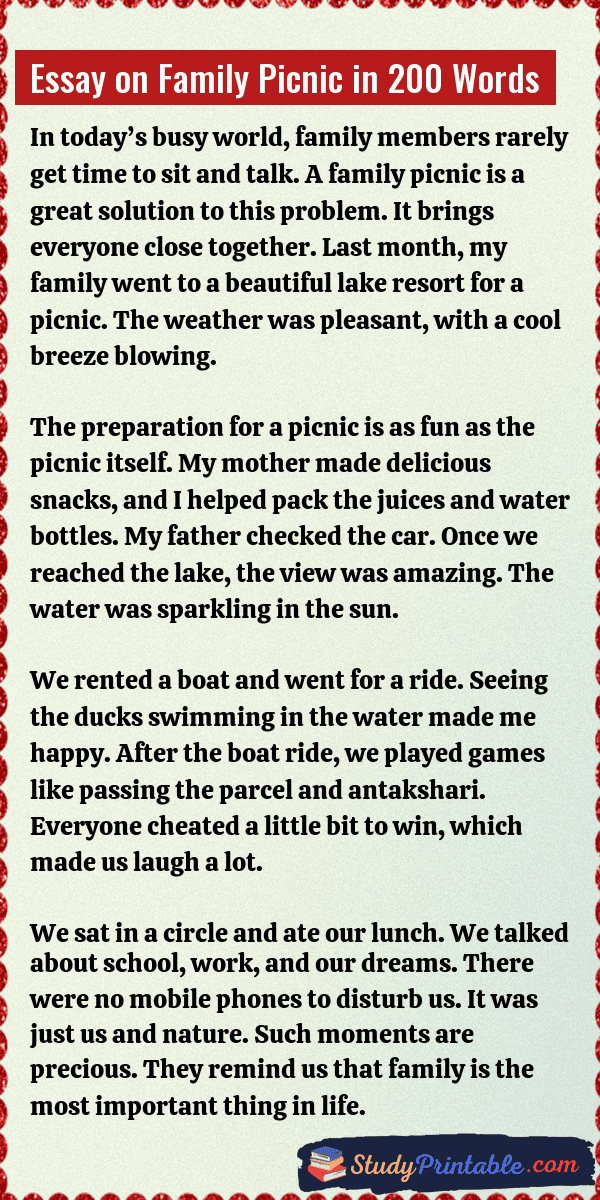 Essay on Family Picnic in 200 Words