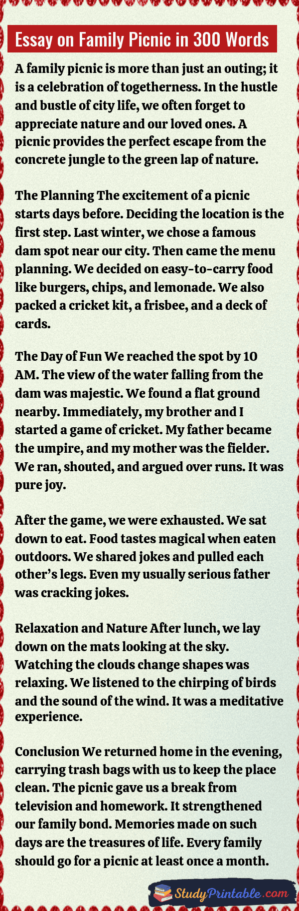 Essay on Family Picnic in 300 Words