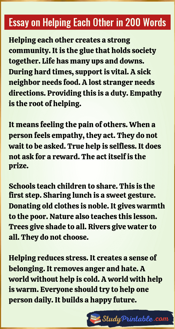 Essay on Helping Each Other in 200 Words