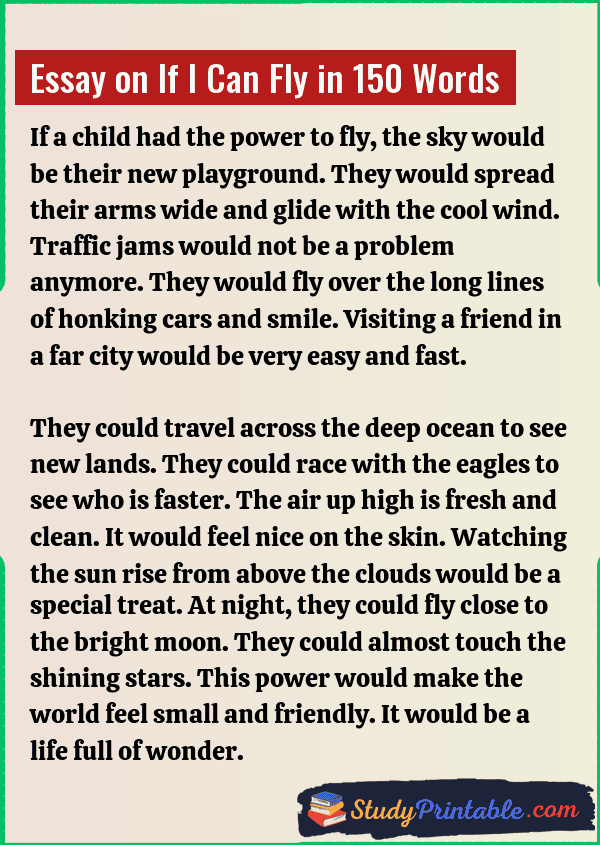 Essay on If I Can Fly in 150 Words