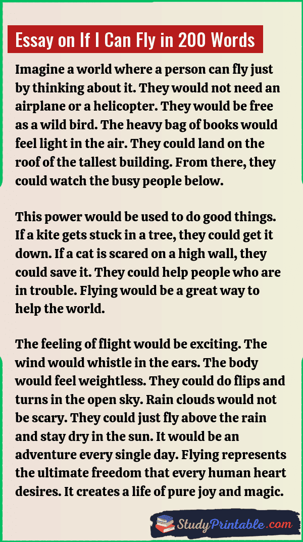 Essay on If I Can Fly in 200 Words