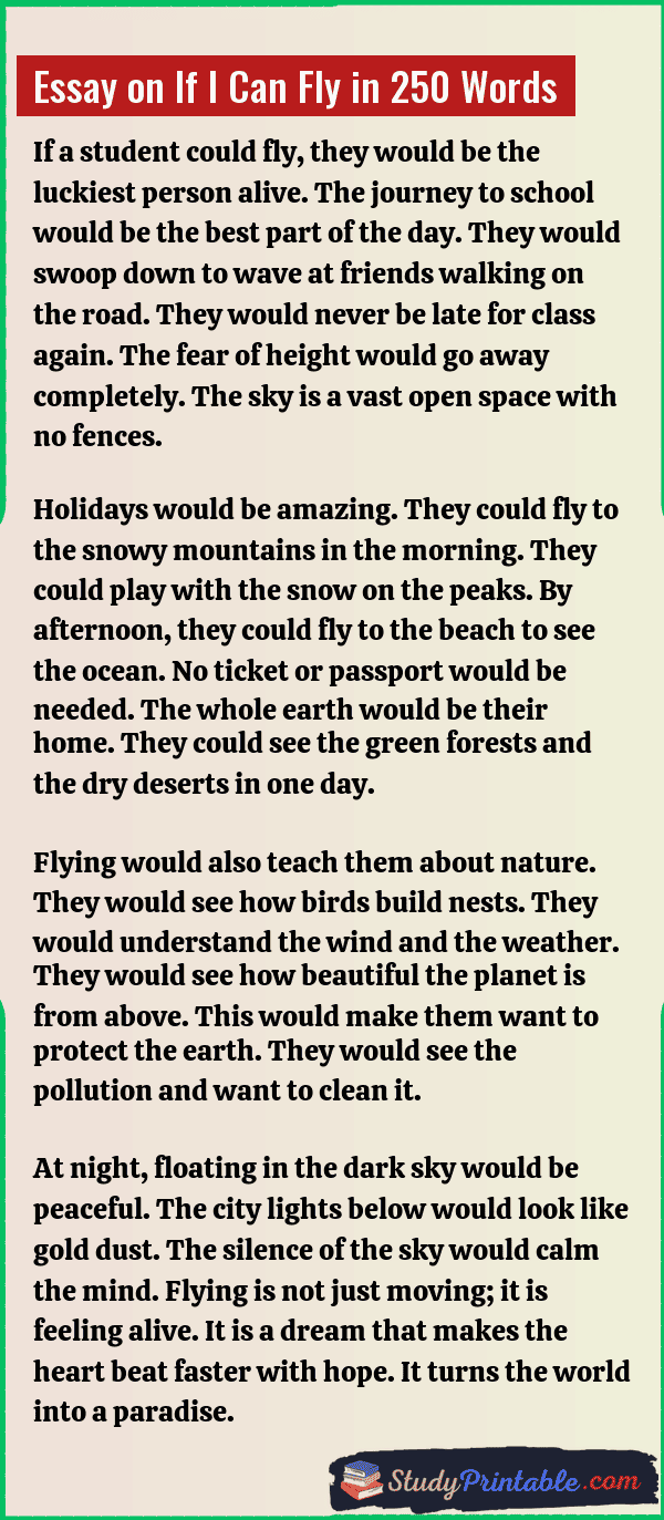 Essay on If I Can Fly in 250 Words