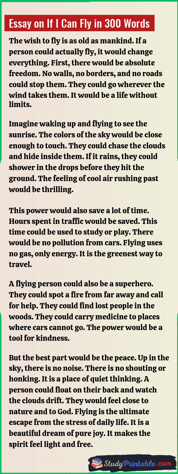 Essay on If I Can Fly in 300 Words