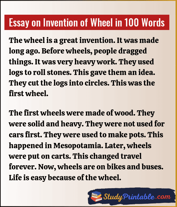 Essay on Invention of Wheel in 100 Words