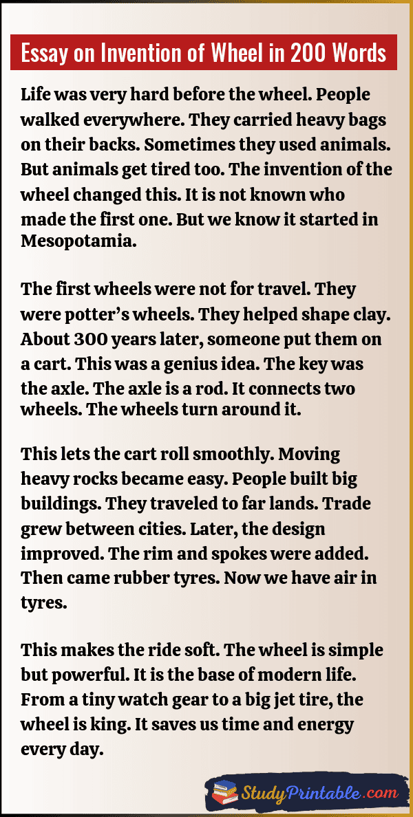 Essay on Invention of Wheel in 200 Words