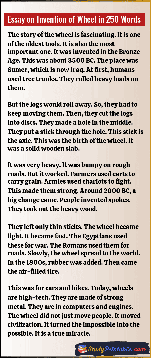 Essay on Invention of Wheel in 250 Words