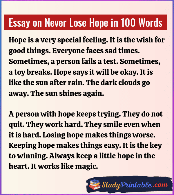 Essay on Never Lose Hope in 100 Words