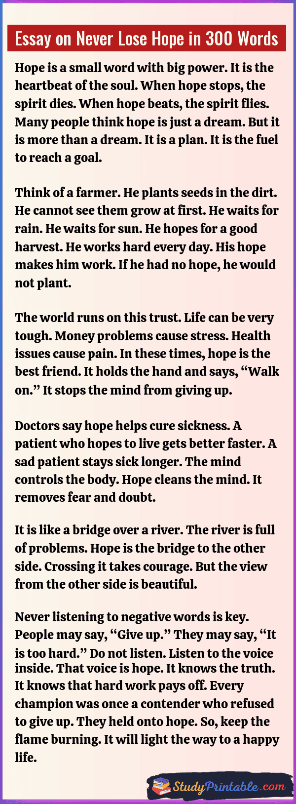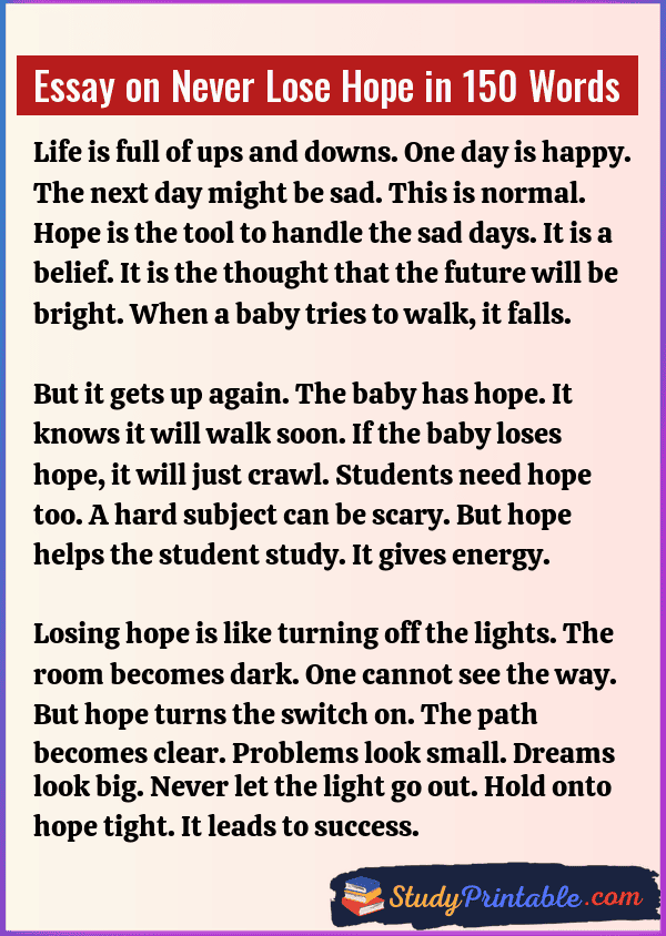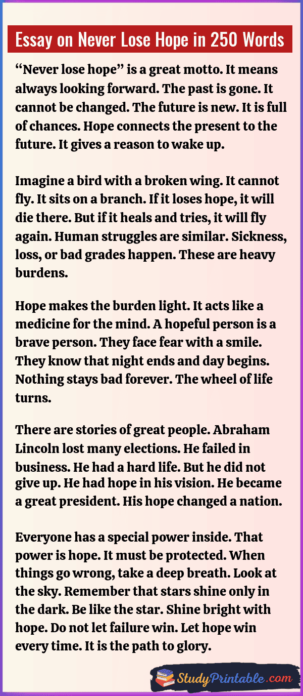 Essay on Never Lose Hope in 300 Words