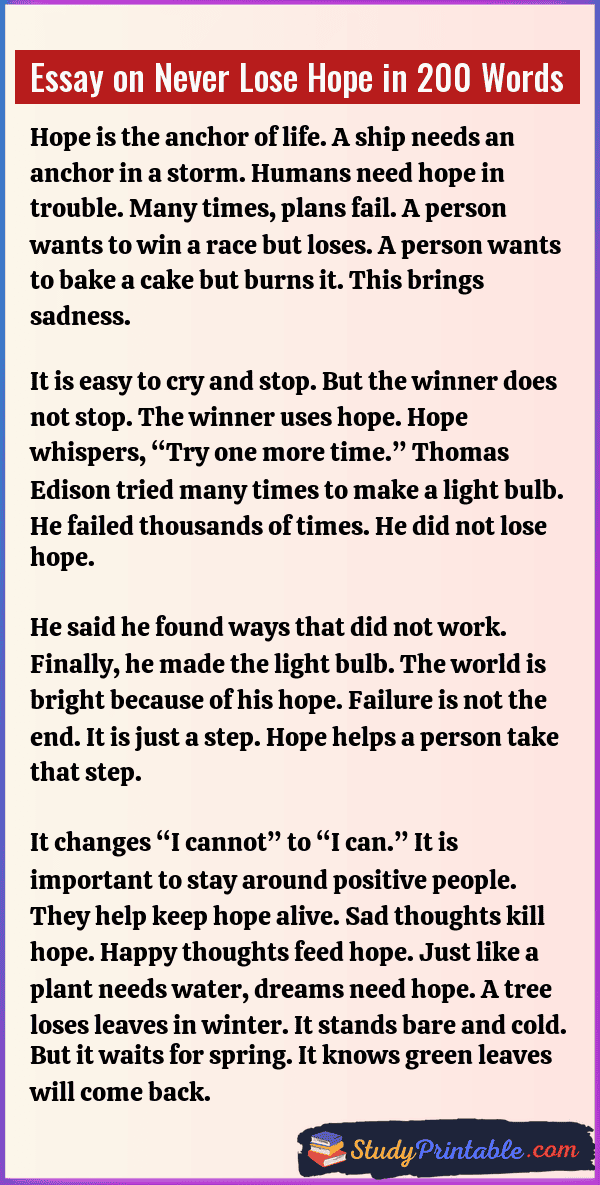 Essay on Never Lose Hope in 200 Words