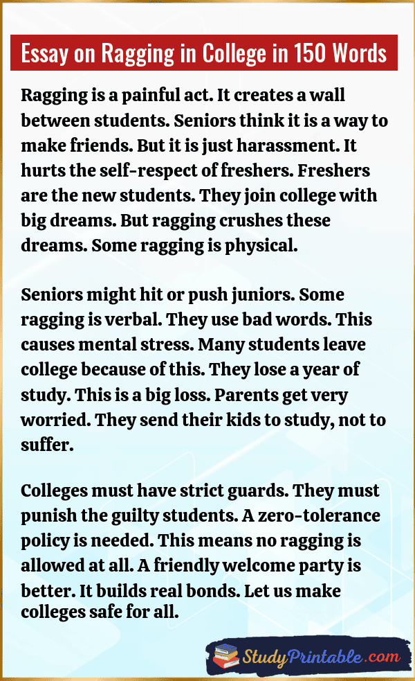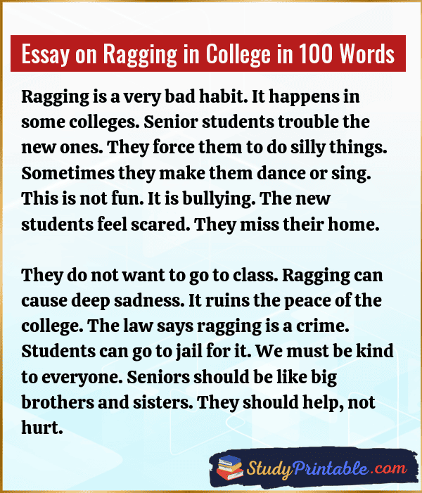 Essay on Ragging in College in 100 Words