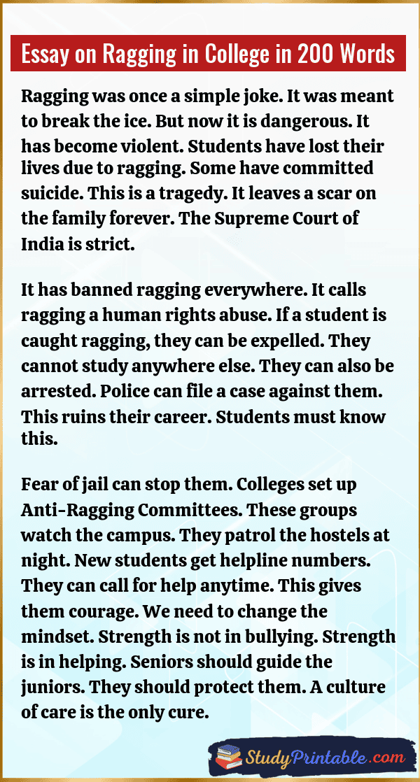 Essay on Ragging in College in 200 Words