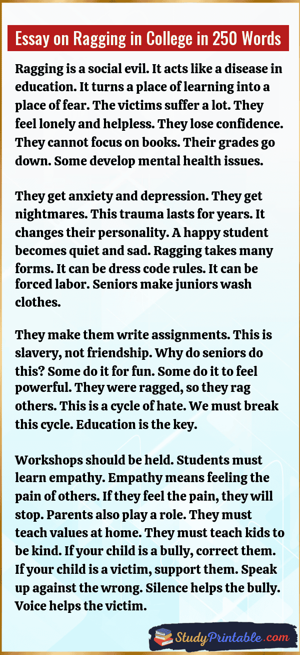 Essay on Ragging in College in 250 Words