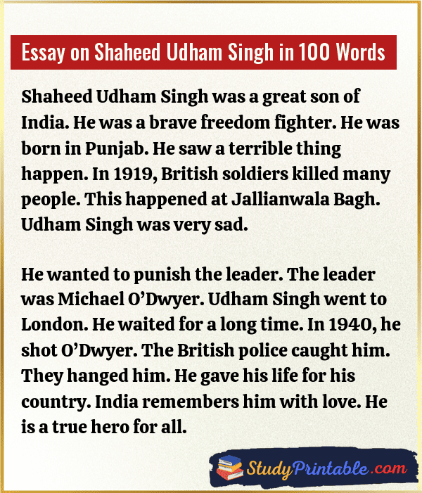 Essay on Shaheed Udham Singh in 100 Words