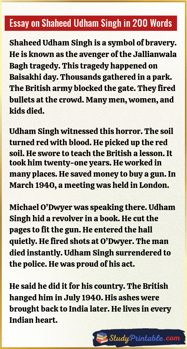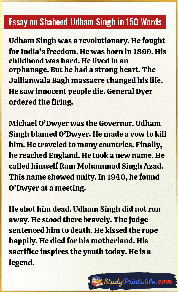 Essay on Shaheed Udham Singh in 200 Words
