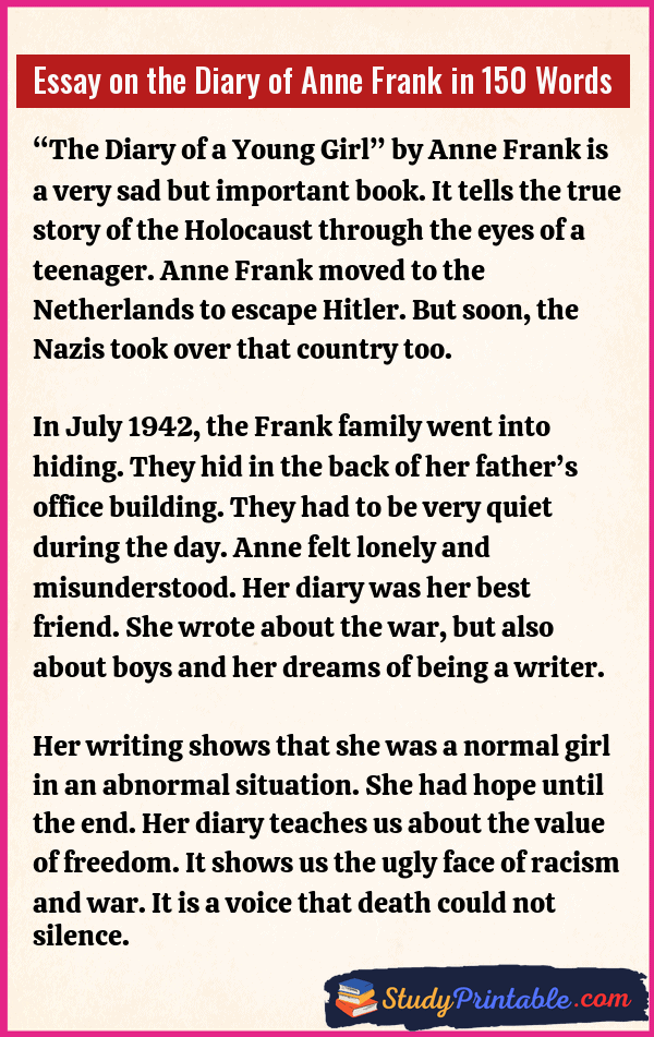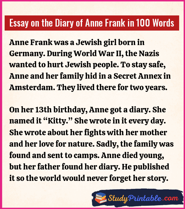 Essay on the Diary of Anne Frank in 100 Words